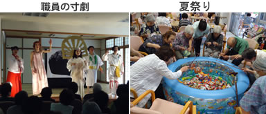約30種のクラブの中からお好きなものを選んで参加して頂ける他、神楽・舞踊等の本格的なボランティア・芸達者な職員による寸劇などの観賞を楽しめます。利用者数・職員数が共に多いため気の合う仲間も見つけやすく、簡単なリハビリも含め比較的重度な方でも利用できるプログラムが多くあります。
